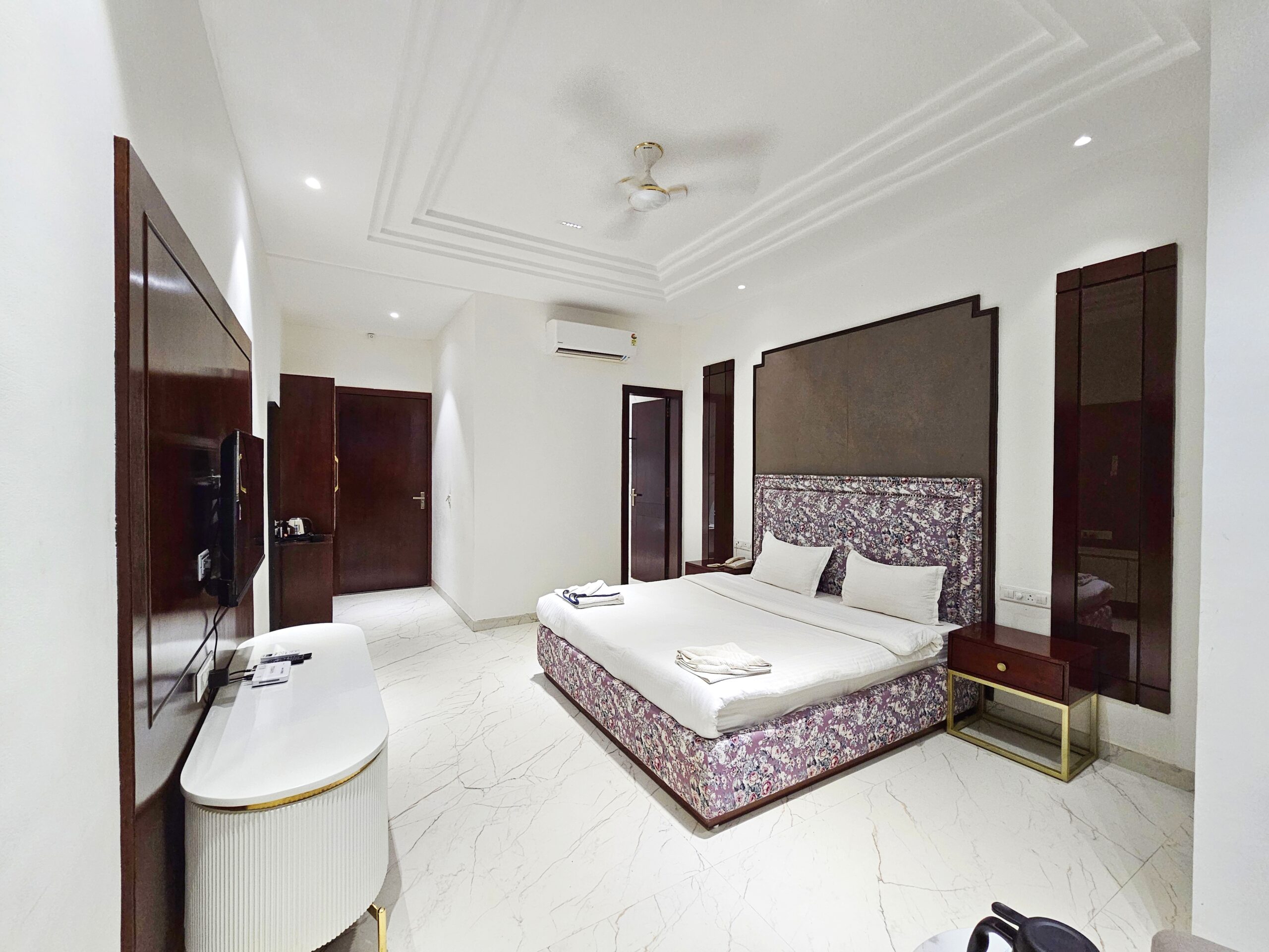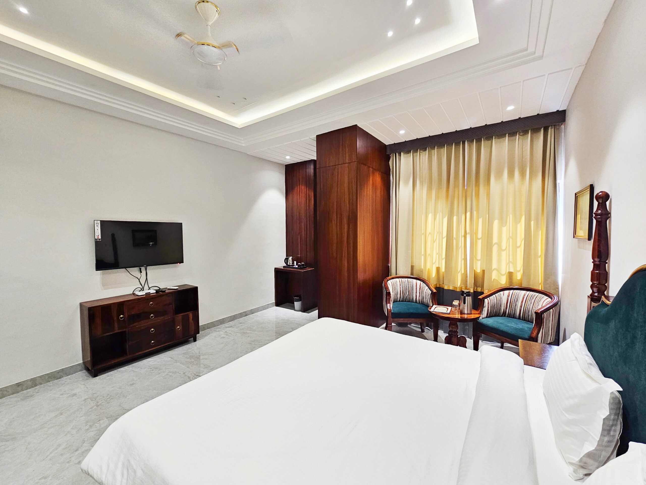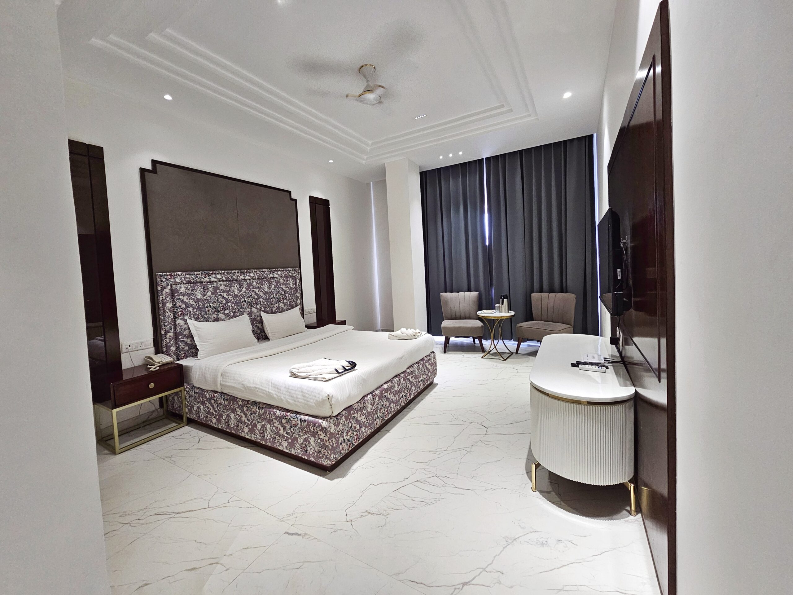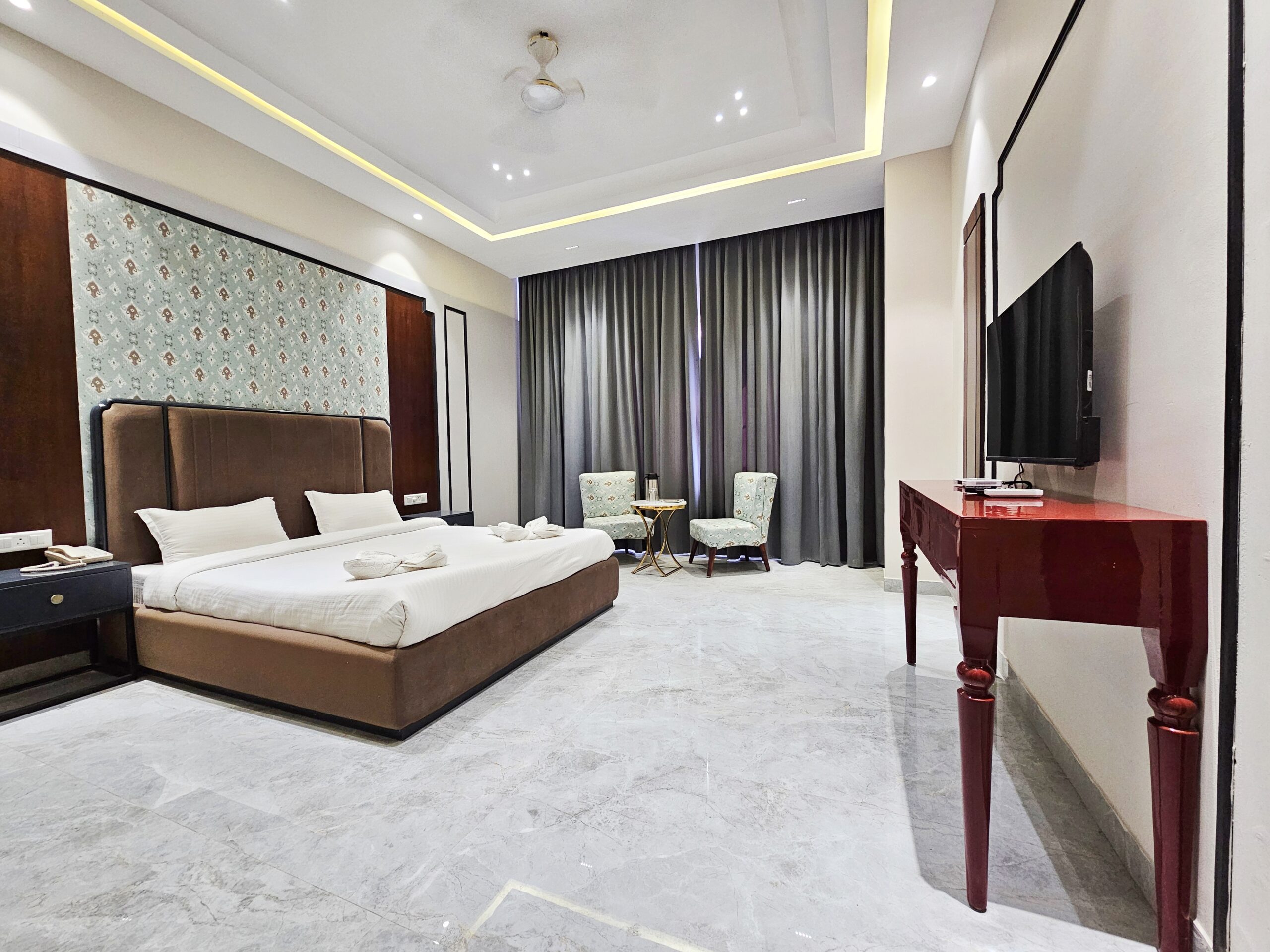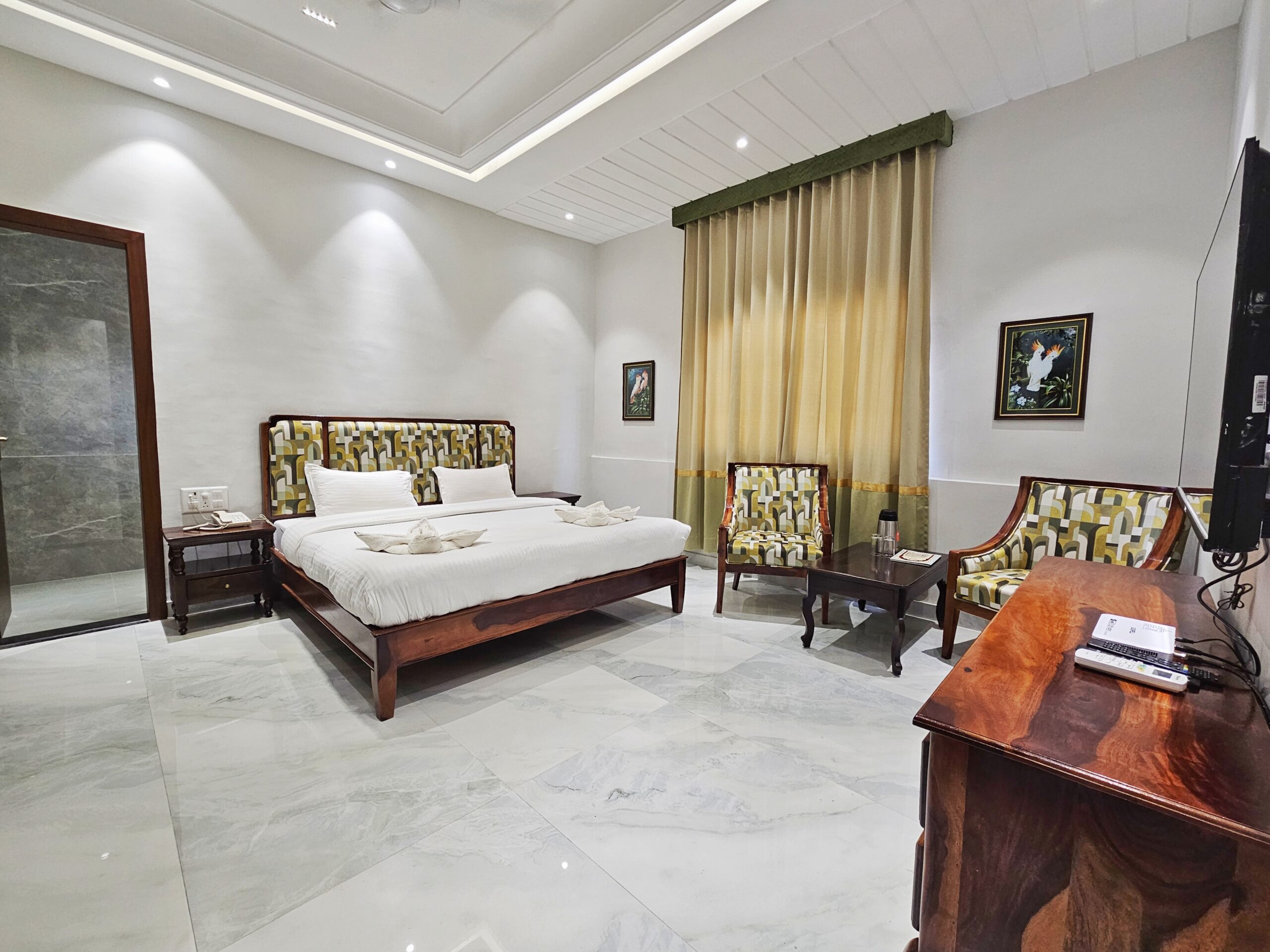 Elegantly designed for comfort and convenience, the Superior Room at Hotel Sagar Haveli is ideal for solo travellers, couples, or small families. With tasteful interiors inspired by the ethnic charm of our golden haveli-style architecture, this room features air conditioning, a private bathroom with complimentary toiletries, and a dedicated work desk. It comfortably sleeps up to 3 guests with a plush double bed. Enjoy seamless connectivity with complimentary high-speed Wi-Fi (25 Mbps or higher) and the assurance of attentive service from our 24-hour front desk. With a total of 35 thoughtfully appointed rooms, free on-site parking, and bilingual staff fluent in English and Hindi, the Superior Room offers a warm, hassle-free stay that makes you feel right at home.